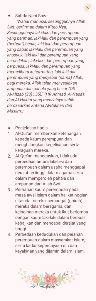 Ditulis oleh ARUM WARDANI21 Agustus 2020 ARUM’S NOTES 1 : PEREMPUAN dalam AL-QUR’AN Bagikan: Bagikan ke X(Membuka di jendela yang baru) X Bagikan pada Facebook(Membuka di jendela yang baru) Facebook Suka Memuat... Terkait Tinggalkan komentar Batalkan balasan Δ