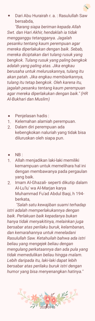 Ditulis oleh ARUM WARDANI15 September 2020 ARUM’S NOTES 4 : PERINTAH BERSIKAP BAIK kepada WANITA Bagikan: Bagikan ke X(Membuka di jendela yang baru) X Bagikan pada Facebook(Membuka di jendela yang baru) Facebook Suka Memuat... Terkait Tinggalkan komentar Batalkan balasan Δ