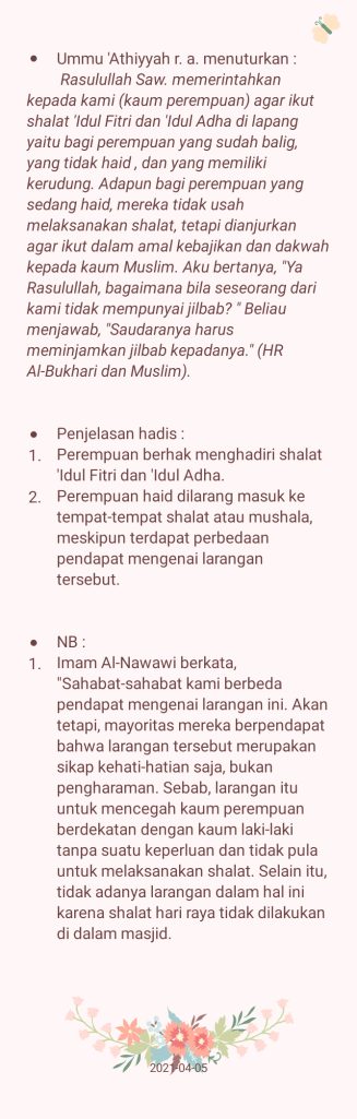 Ditulis oleh ARUM WARDANI19 Maret 20215 April 2021 ARUM’ S NOTES 15 : SHALAT ‘ID bagi PEREMPUAN Bagikan: Bagikan ke X(Membuka di jendela yang baru) X Bagikan pada Facebook(Membuka di jendela yang baru) Facebook Suka Memuat... Terkait Tinggalkan komentar Batalkan balasan Δ